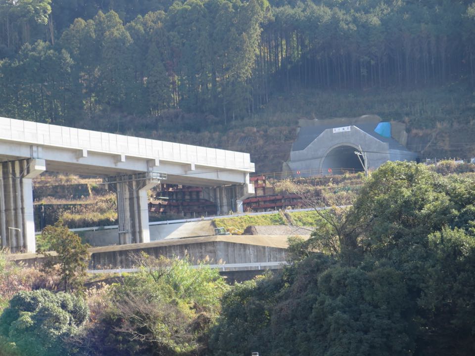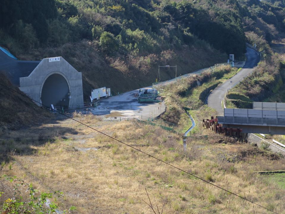 長崎方の千綿トンネル(L=1632m・工事完成済)北側坑口を見上げています。 |