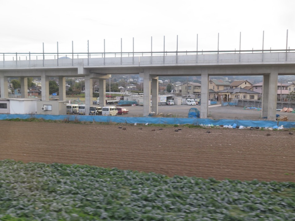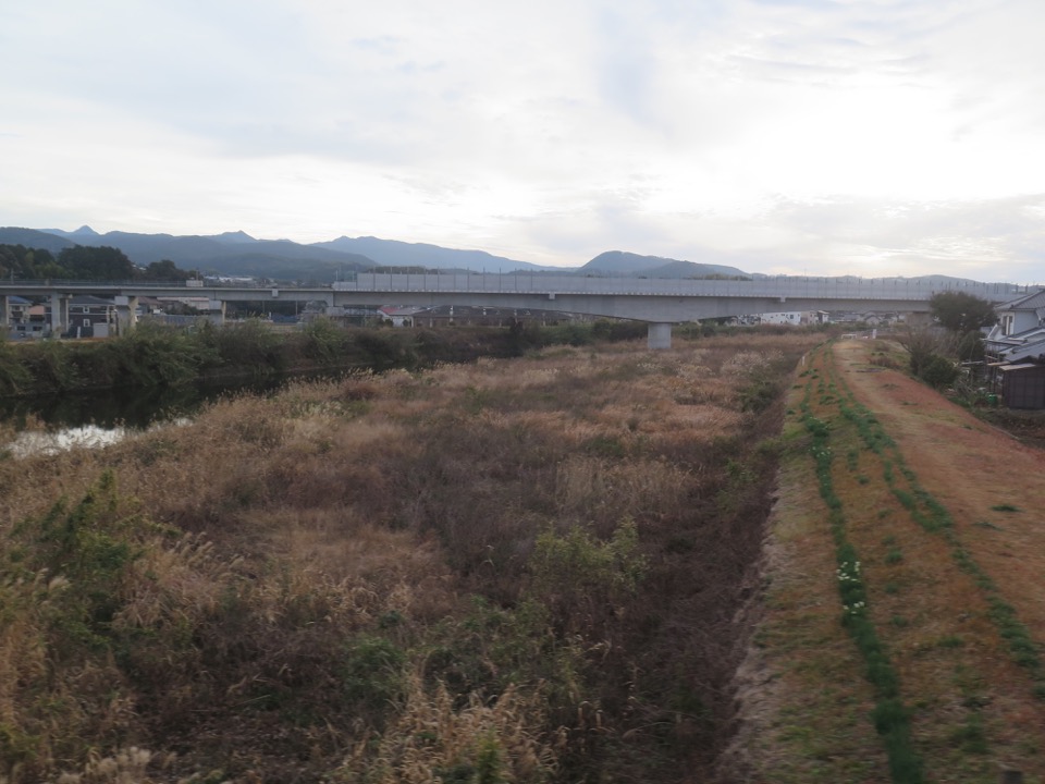 工区南端の郡川橋梁です。この長崎方(右側)が、大村車両基地です。