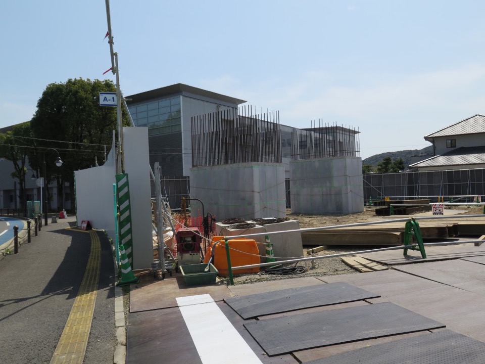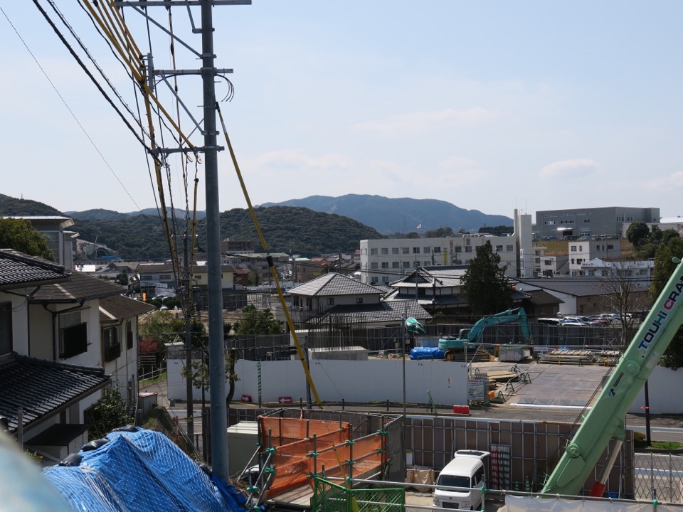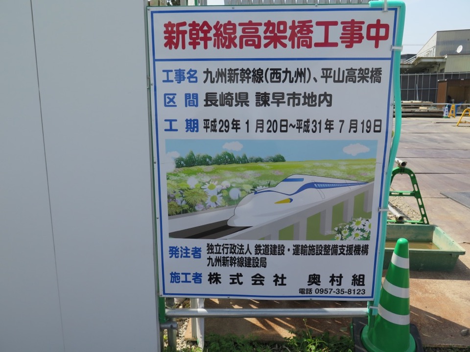 長崎線下りを越えたところ。手前のクレーンが立っている所までが宇都高架橋。道を挟んだ向こうから、平山高架橋工区です。