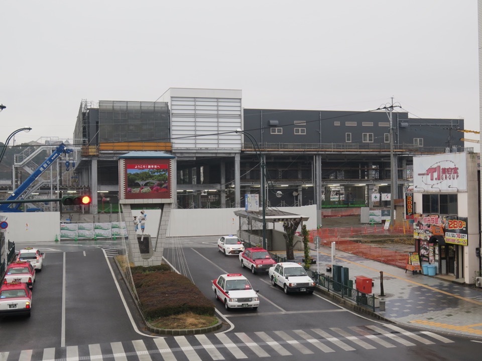 新駅舎を南東側から見ます。駅周辺の再開発は、かなり大規模なものになります。 |