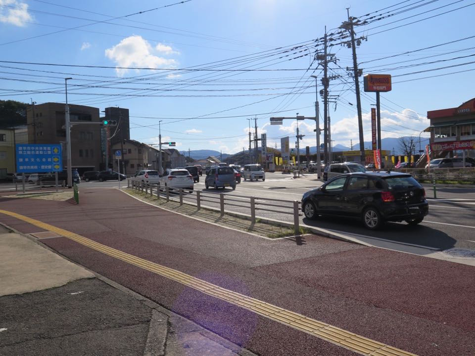 宇都町交差点。通行量は多いですが、画面の右端に写っている飲食店の直下をトンネルで抜けます。極めて土被りが浅く、慎重な施工が求められます。 |