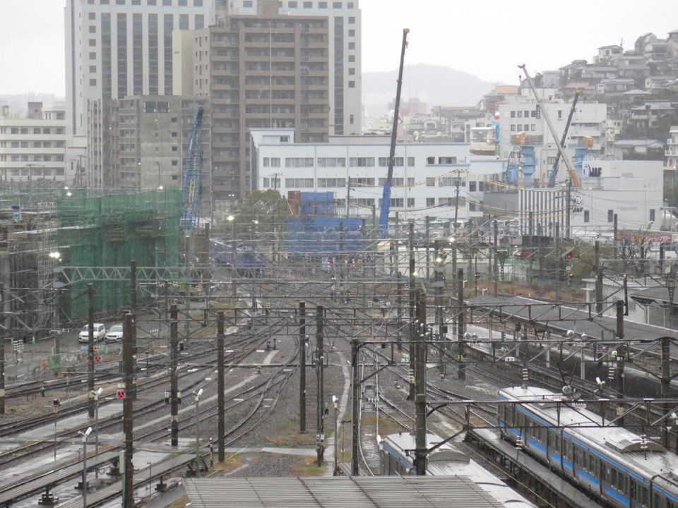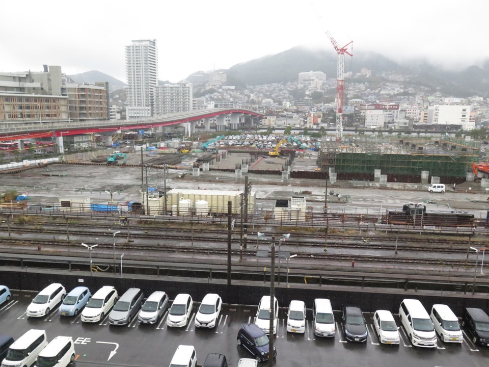 新駅部の南端。ここでは在来線工事の方が早く進んでいます。長崎駅舎・駅前広場等デザイン基本計画もご覧下さい。 |