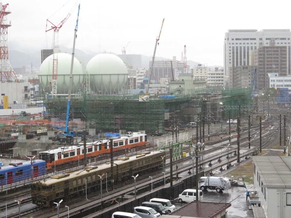 右端が現駅。左側の空き地部分が、新幹線・在来線の新駅になります。 |