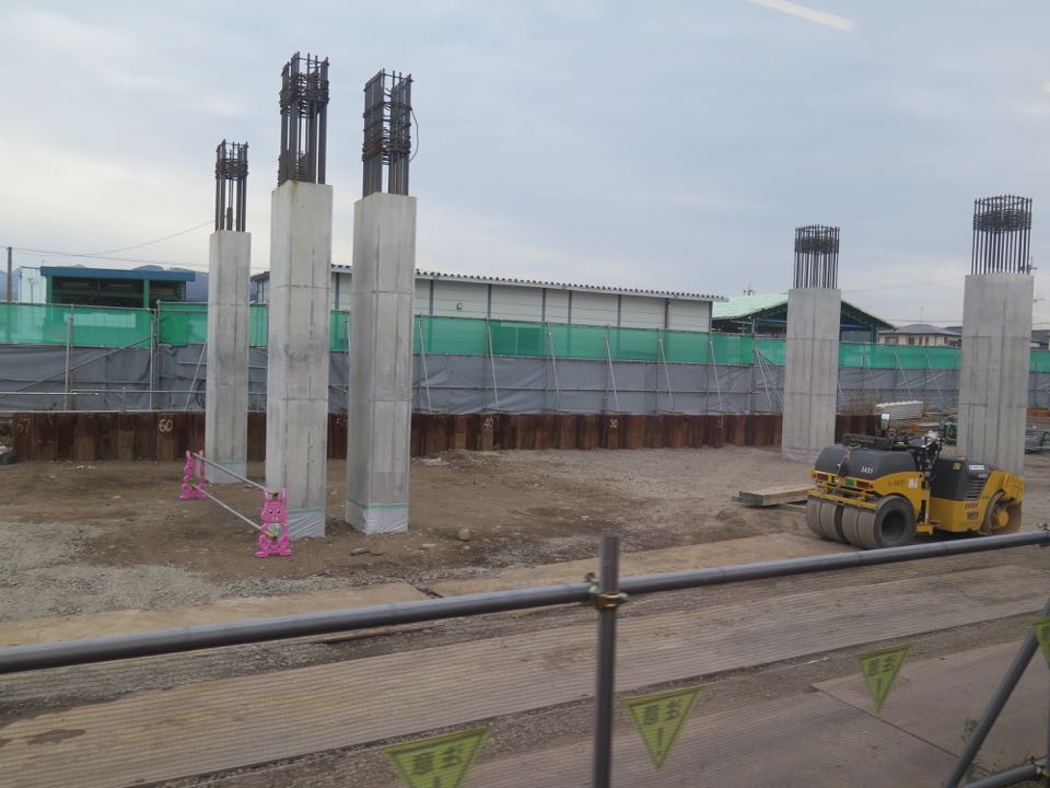 竹松駅の南・長崎方を見ます。高架橋脚が立ち上がっています。この付近は約1.5kmに渡って直線区間が続きます。 |