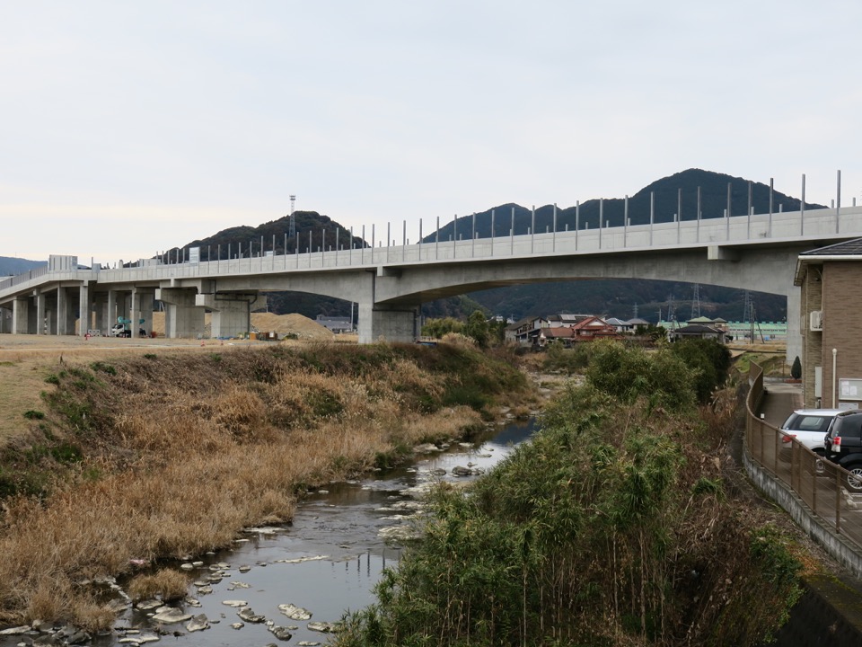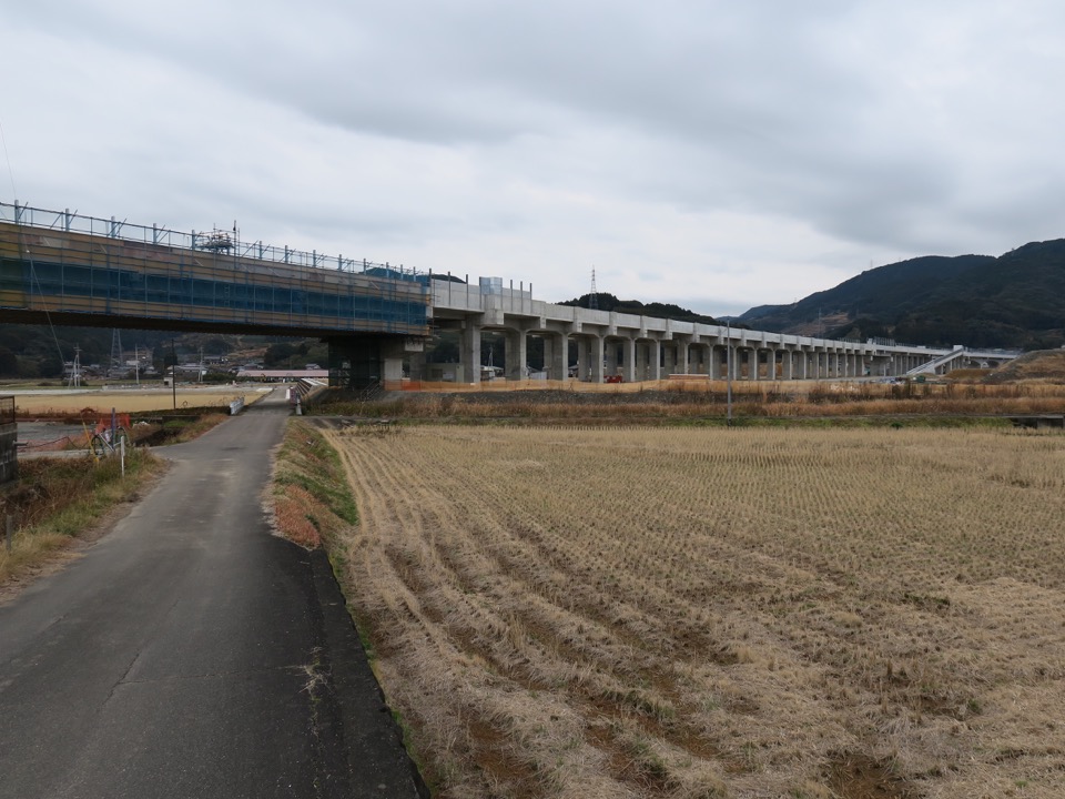 西側から駅部高架橋を見ます。右が長崎方。 |