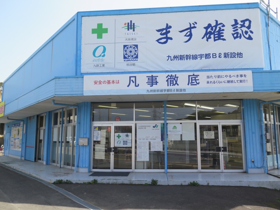 工事事務所といえばプレハブが相場ですが、ここは民間の建物を流用できたようです。 |