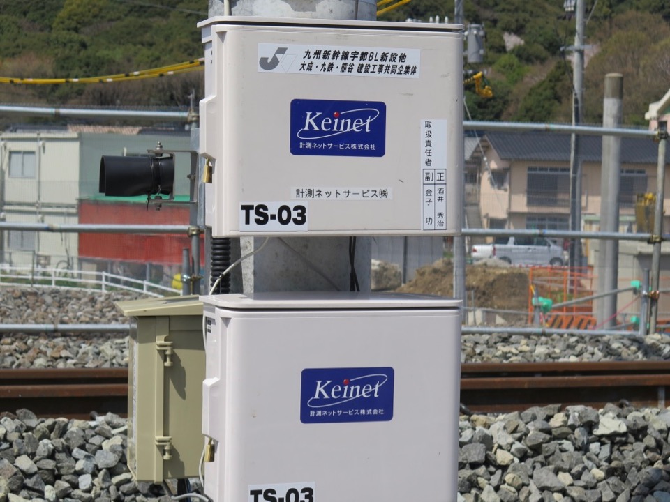 在来線近接工事では、橋脚杭用の孔を掘削する際に、地上の施設に影響を与えることが懸念されます。地盤の変動量を常時モニタしているようです。 |