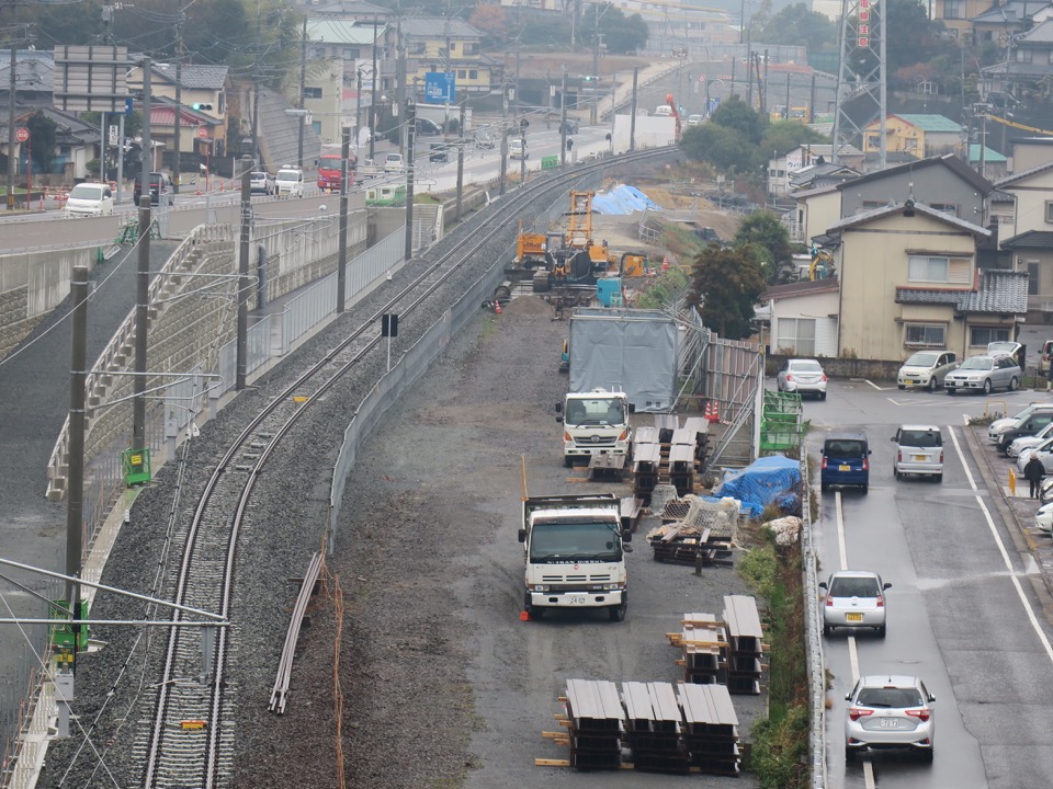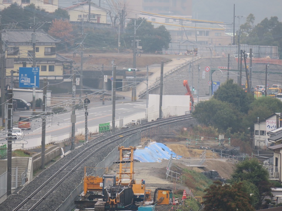 長崎方に向かう新幹線は、移設された長崎線上りとしばらく併走し、それをオーバークロスします。