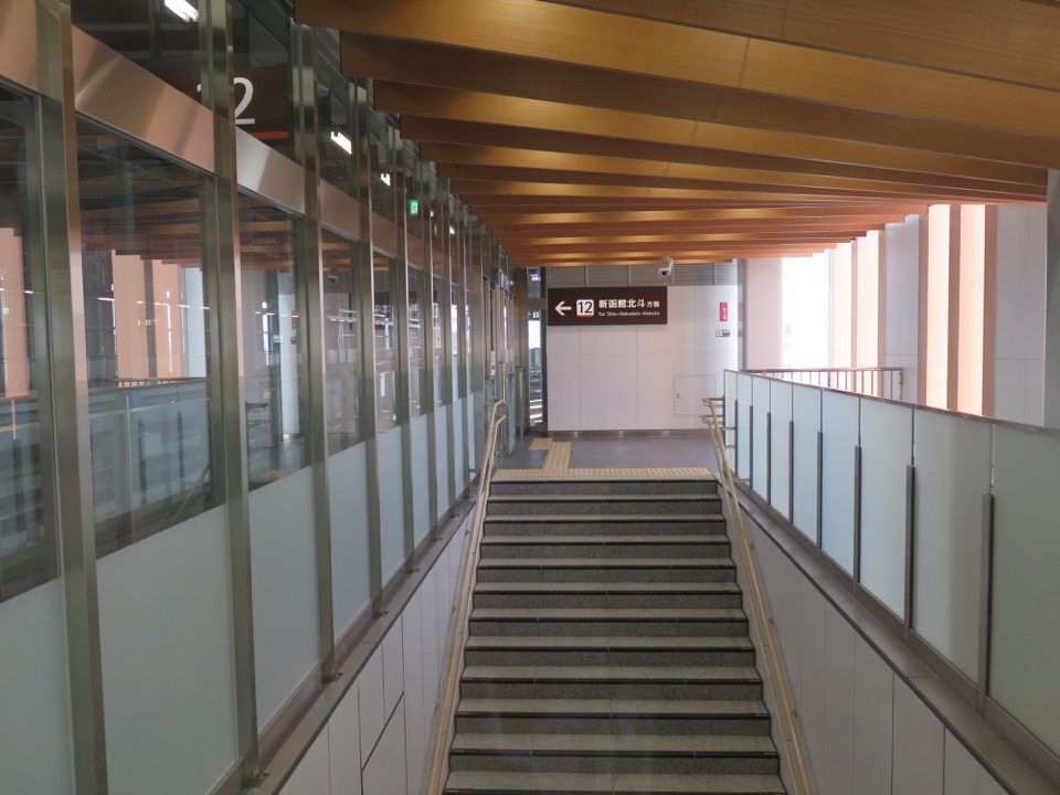 ホーム上の待合室から、階段を見ます。