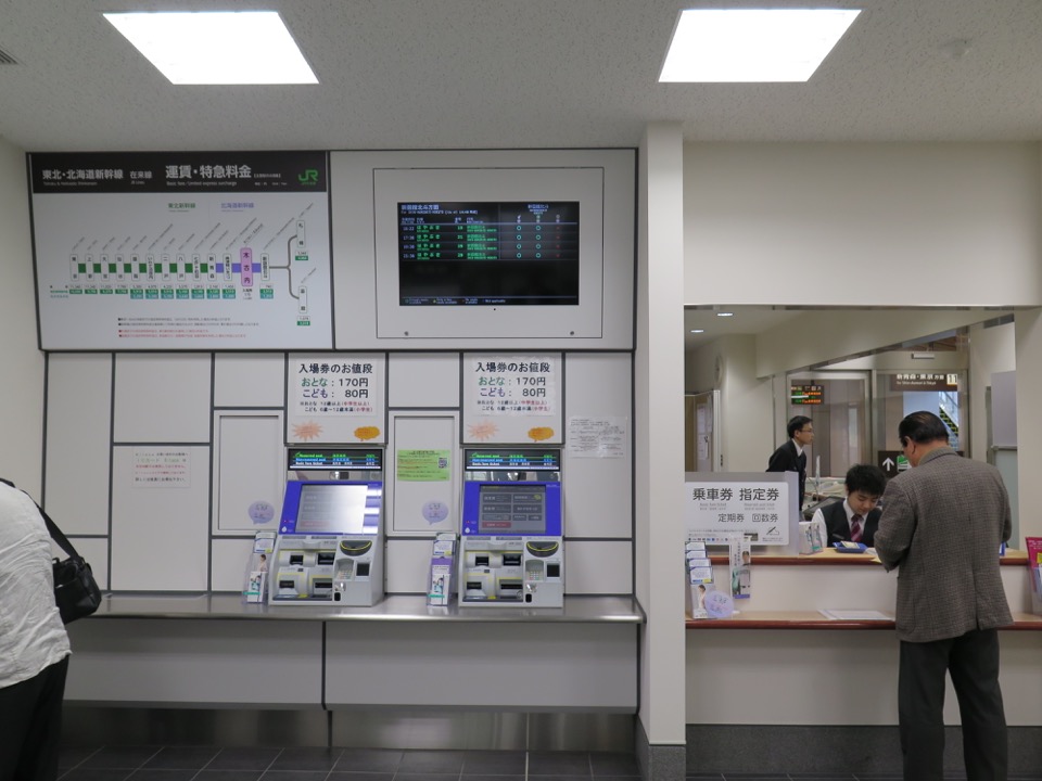 「みどりの窓口」内部。窓口は、有人改札通路にも面しています。指定券自動券売機が2台設置されています。