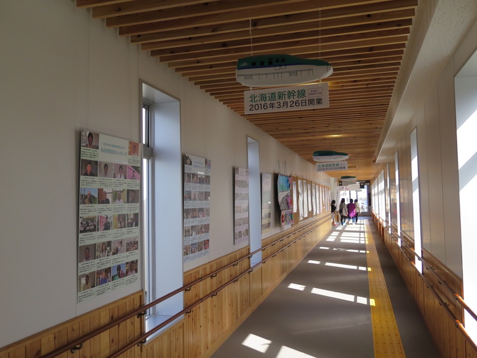 連絡通路を登ると、新幹線開業前からあった、在来線改札前の通路へ出ます。新幹線開業前に、改装されました。