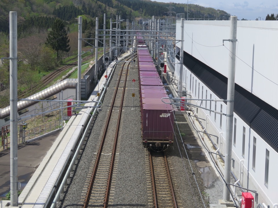 通路(跨線橋)からは、海峡線を走る貨物列車が見えます。