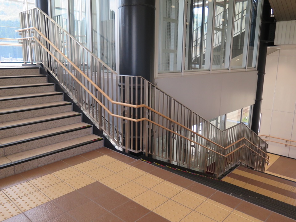跨線橋と地上を結ぶのは、階段及びエレベーターです。