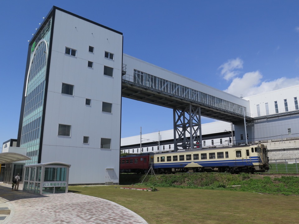 津軽線の気動車が通過して行きます。津軽線の津軽二股駅は、奥津軽いまべつ駅とは別の存在です。