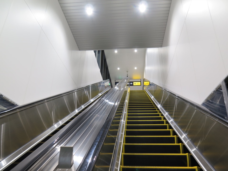 地上ホームから、エスカレーターで橋上駅舎に登ります。