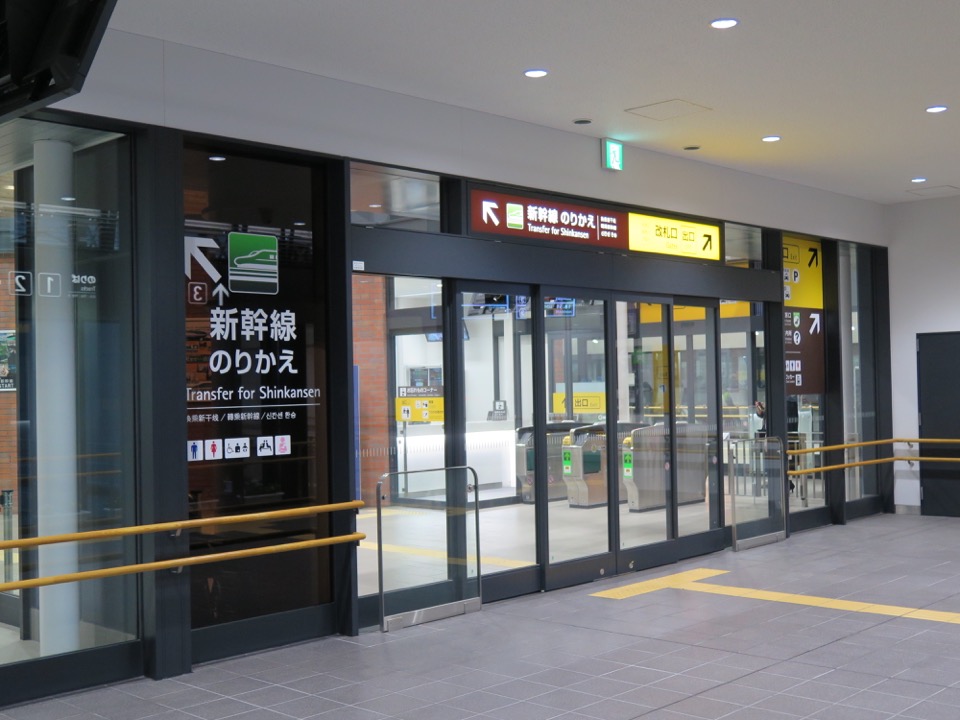 在来線への通路の手前に、またドアがあります。内側には在来線の出場改札が見えています。