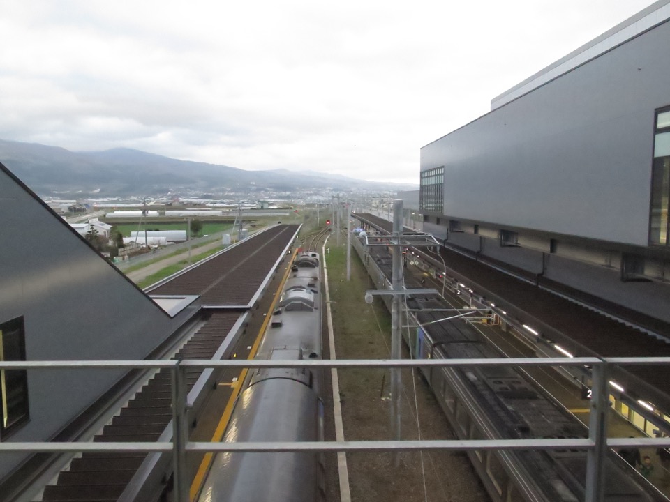在来線乗り換え跨線橋から、2番線(右)・3番線(左)を見ます。特急『北斗』系統がこの駅で交換することが多いようです。