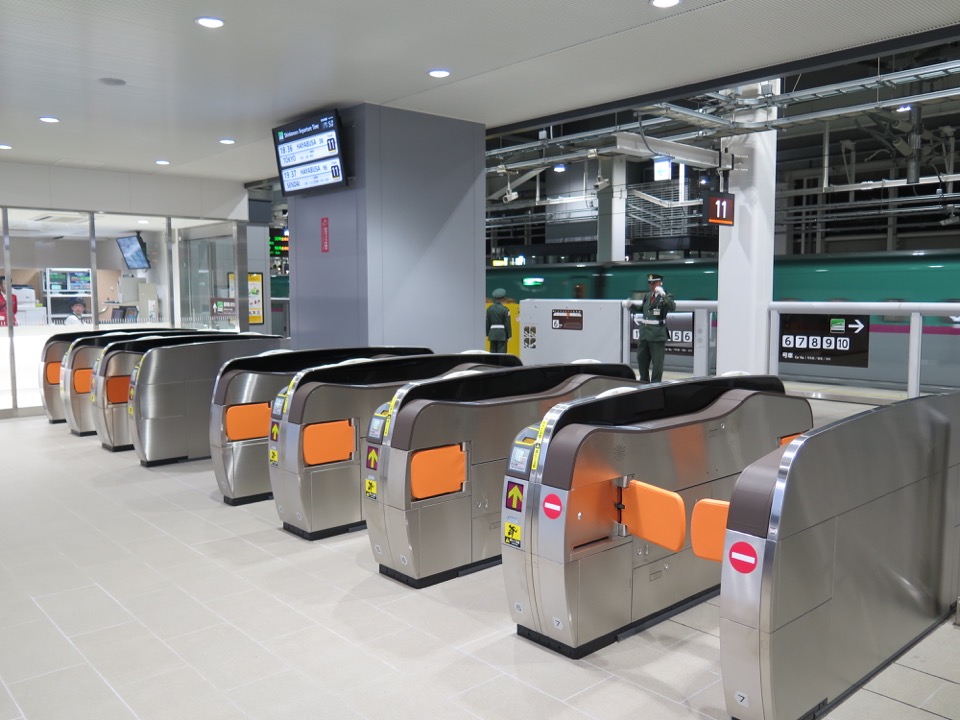 2番線側から、1階中間改札を見ます。上り新幹線へは平面乗り換えが可能ですが、この改札を通るために、かなり歩くことになります。かつての新八代駅における対面乗り換えからは程遠いものがあります。