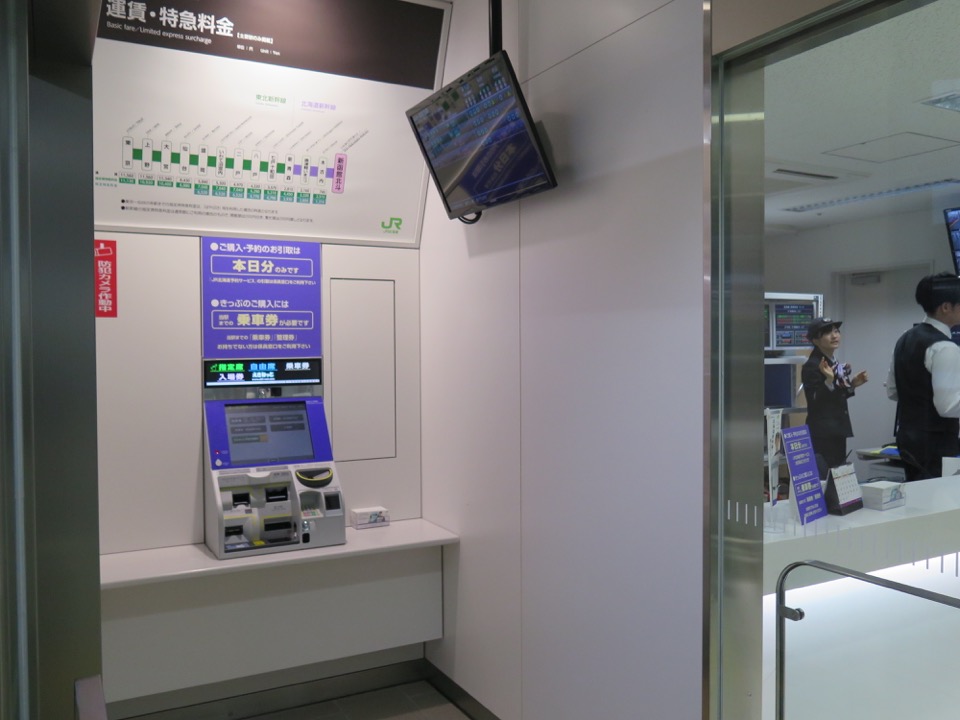 1階中間改札の有人通路兼出札窓口の在来線側には、指定券自動券売機が1台だけ設置されています。