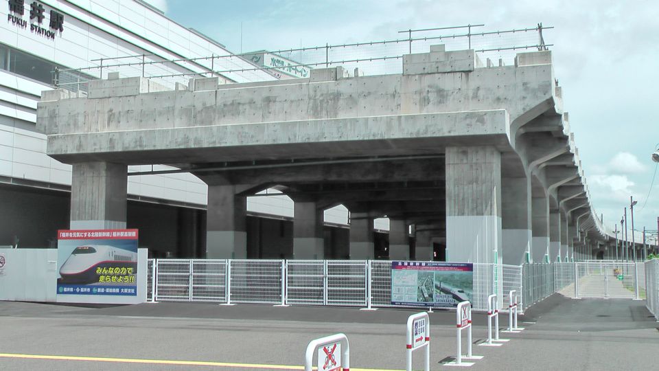 北陸新幹線は、「線」としては長野〜白山総合車両基地が着工区間だが、それに加え、「点」として福井駅部も着工済みである。新規着工区間を加えたくない財務省と、福井延伸を既成事実化したい地元との妥協の産物である。