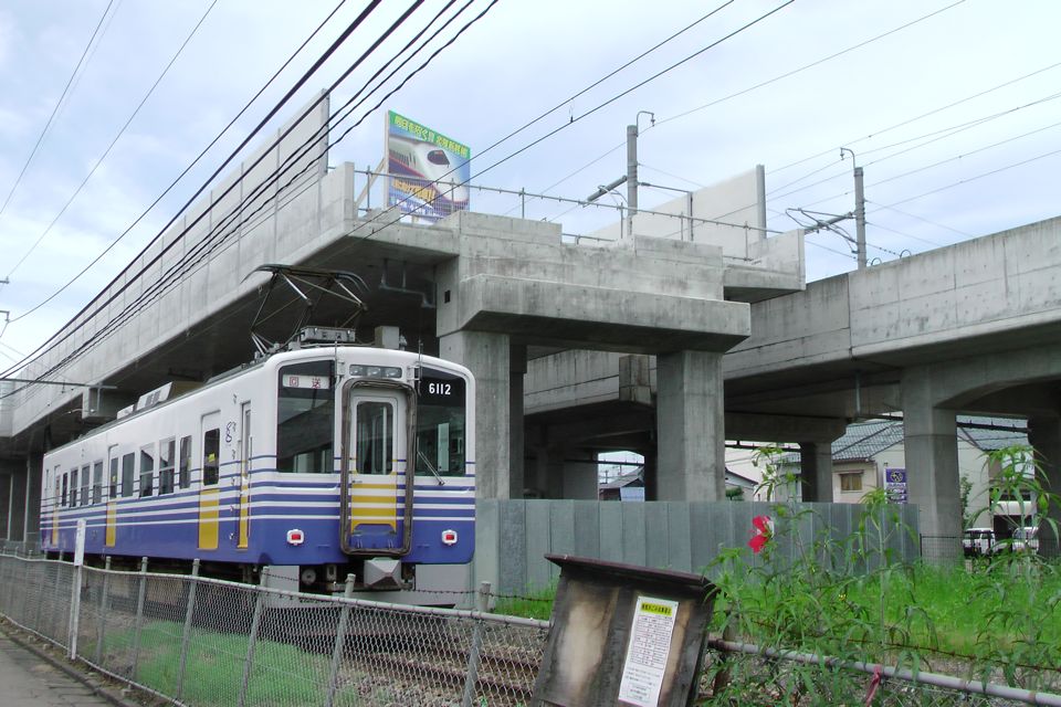 当初、えちぜん鉄道が2階・新幹線が3階という2層構造にする計画だったが、建設費が高くつくため着工が遅くなりそうなことと、えちぜん鉄道三国線LRT化→福井鉄道路面部分乗り入れ構想もあって(この構想自体も、北陸線をオーバークロスするえちぜん鉄道三国線を、さらに北陸新幹線がオーバークロスしなければならないことを避けたいという狙いもある)、結局単層高架で着工となった。LRT化に伴う路面電車の福井駅前乗り入れ構造改良も、地元の反対で思うにまかせず、結局えちぜん鉄道の高架化構想も宙に浮いたかたちとなり、完成した新幹線高架部をえちぜん鉄道が暫定的に使用する、という案もある。将来は不透明だが、とにかく駅部の北半分が、1面2線という中途半端な形で、2009年2月に竣工した。