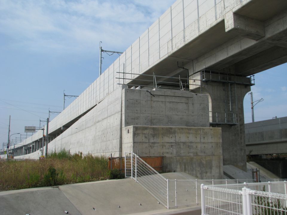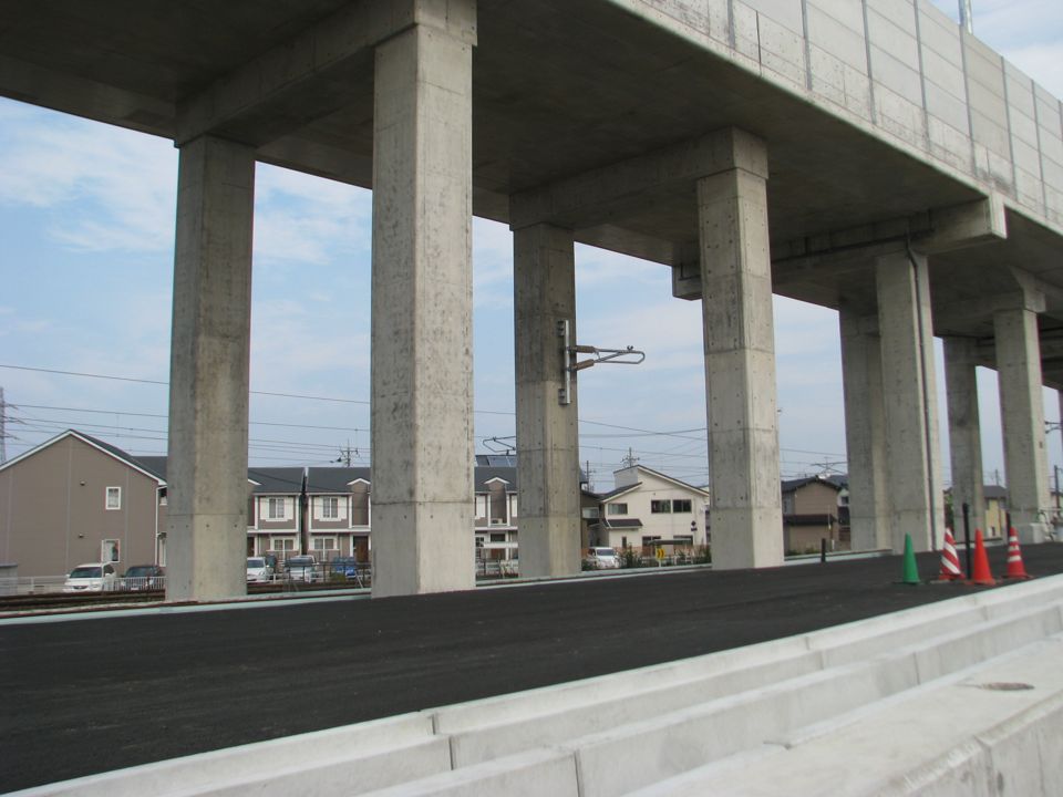 | 下り回送線も、地上に近い部分は路盤が完成しています。 |