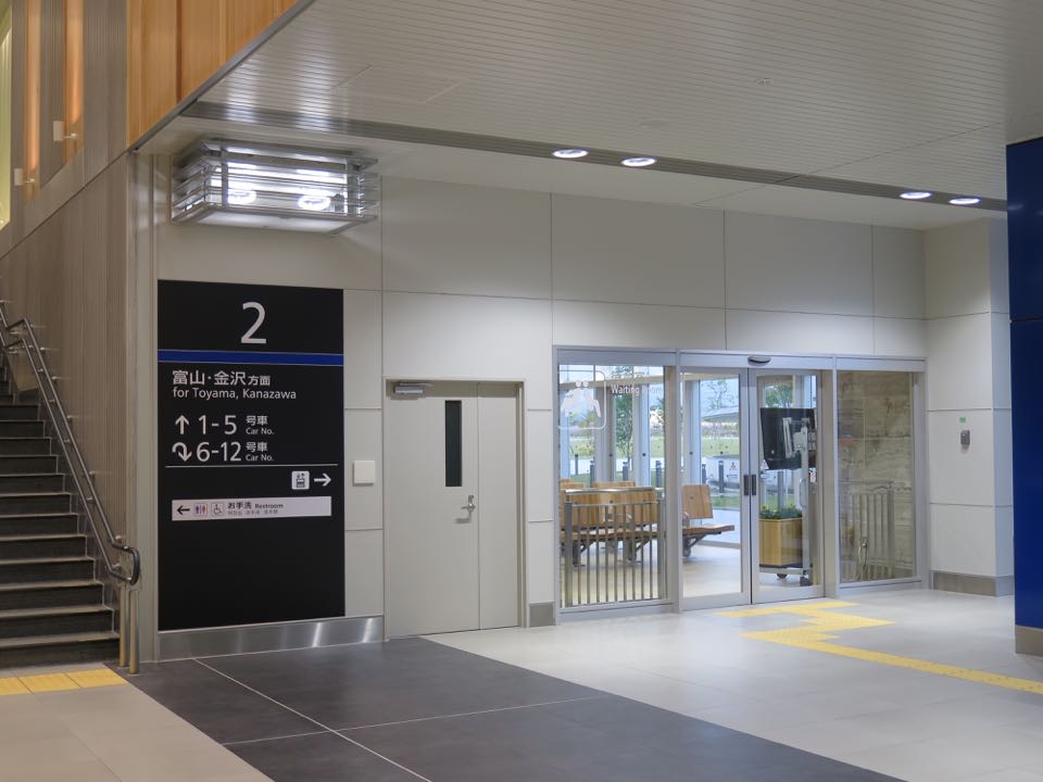 地上コンコースでは階段の向かって右側に改札内待合室があります。訪れたら中もご覧下さい。