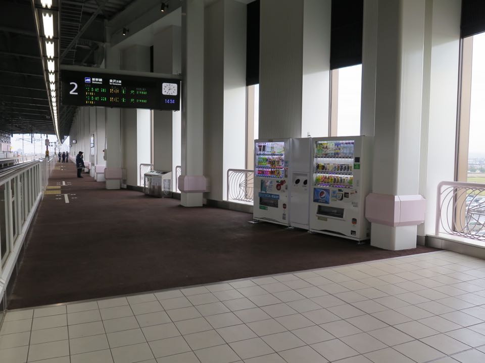 金沢方ホーム階段の東京よりです。中央部から段々ホーム幅が狭くなる部分です。