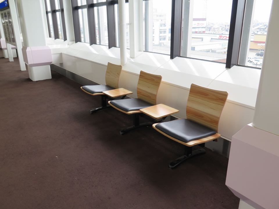 待合室以外のホーム上にも、場所の許す限り椅子が設置されています。