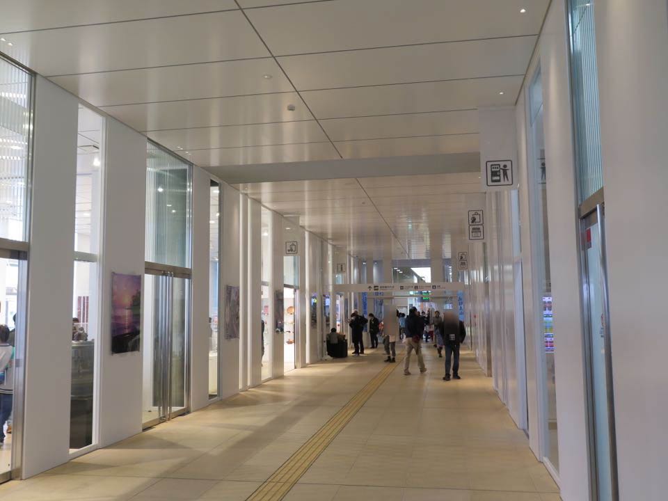 観光交流センター通路。奥が新幹線線駅・手前が城端線駅側です。営業は20時まで。