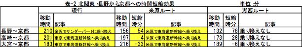 GCTが実現できれば、列車は関西・中京から北陸を越え、北信越或いはそれ以遠にすら乗り入れることができます。高崎程度までなら、東京経由よりも速く到達できると期待できます。京都からの時短効果をシミュレーションした結果が以下です。
