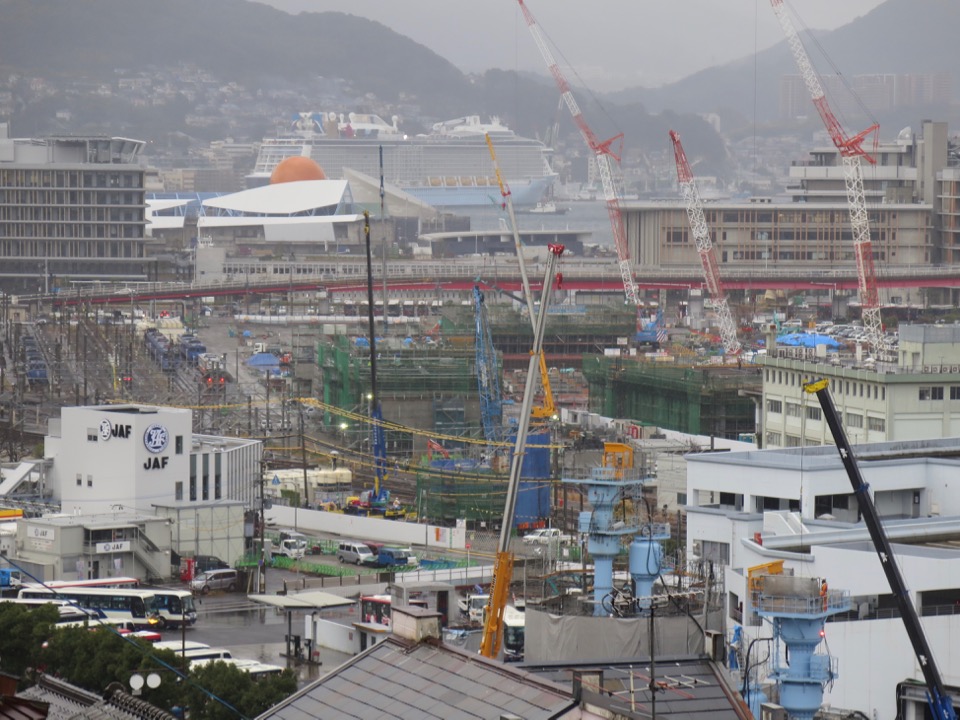 新駅部の南端。ここでは在来線工事の方が早く進んでいます。長崎駅舎・駅前広場等デザイン基本計画もご覧下さい。 |