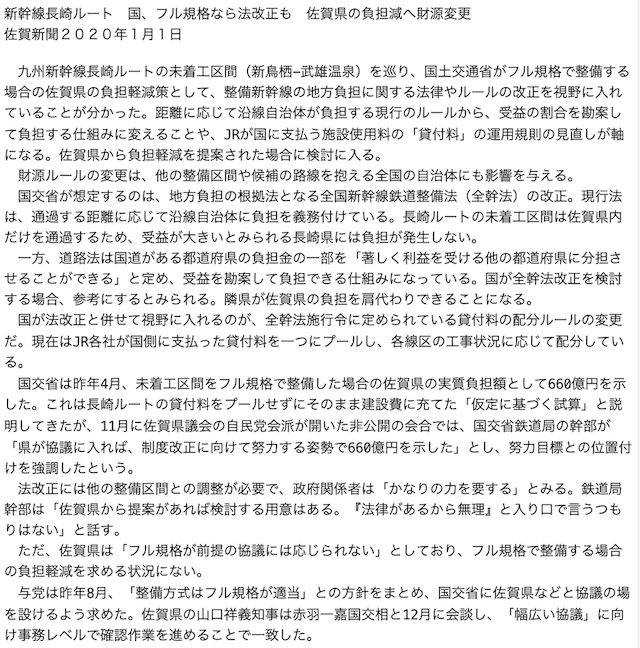 かような状況下、国が佐賀県の負担を軽減すべく現行スキームを変更するため法改正に乗り出すか、というニュースを佐賀新聞が元旦付けで報じた。