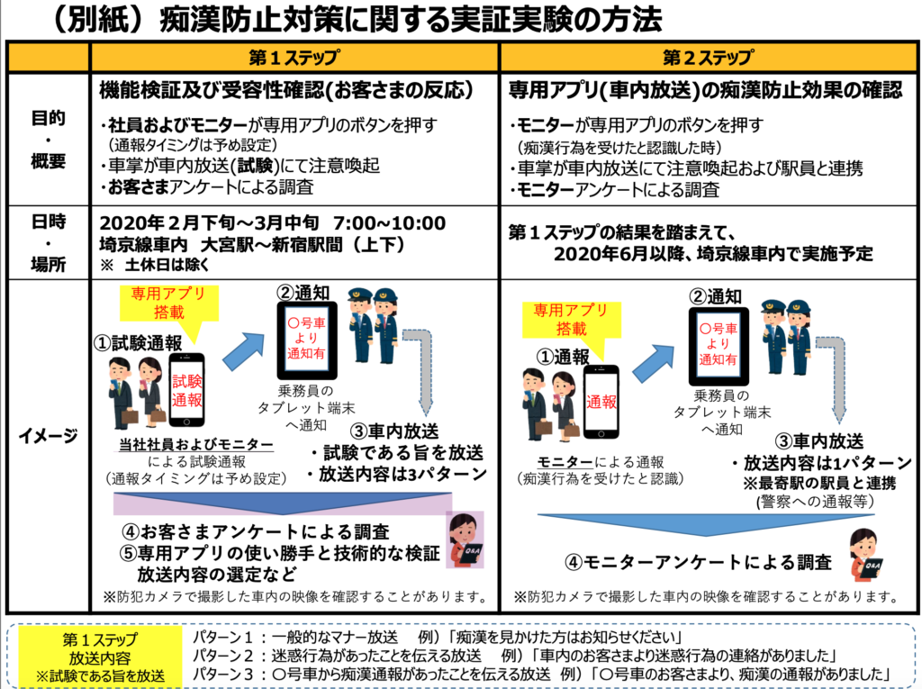 JR東日本が痴漢対策に一歩踏み込んだ。痴漢防止対策に関する実証実験の実施についてと報道発表。乗客がスマホアプリで犯罪事実を通知すると、車内放送で注意喚起すると共に、警察に通報が行く仕組みだ。